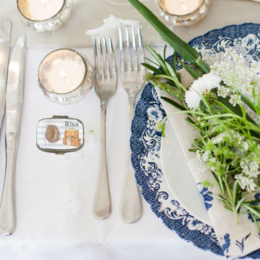 ゲストの名前を入れた小さな小物入れは、式のあともサプリやアクセサリー入れとして日常の中で活躍してくれる“思い出のカタチ”。